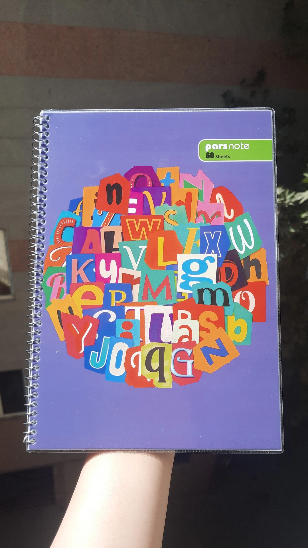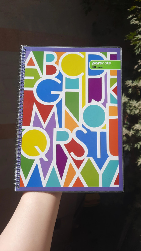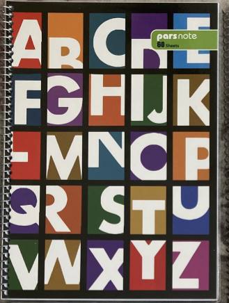 دفتر زبان دوخط ،مجلد سیمی فلزی ۶۰ برگ، خطوط داخل دفتر آبی رنگ می باشد.