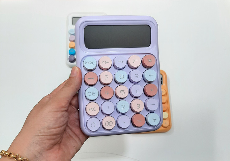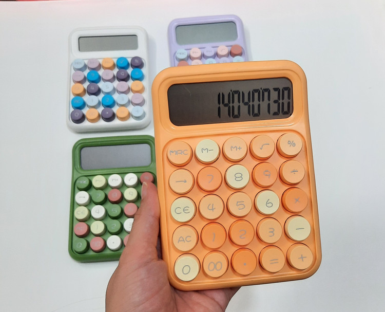 یک ماشین حساب پاستیلی خوش دست و رویایی، تا ۱۲ رقم را میتوان نوشت، از لحاظ کیفیت عالی و درجه یک.